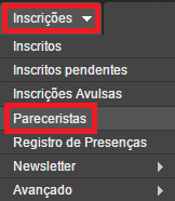 1. Acesse Inscrições > Pareceristas;