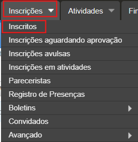 • No painel administrativo, vá ao menu Inscrições > Inscritos.