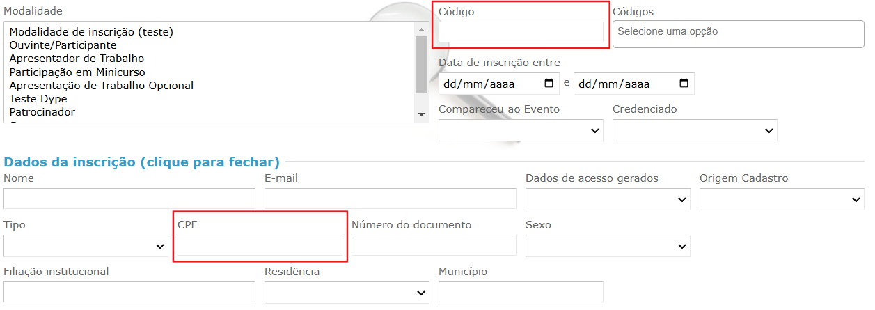 - Recomendamos que busque o inscrito/associado pelo CPF/Documento ou Código de Inscrição, pois são mais precisos.