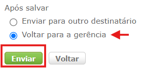 5. Para concluir, marque a opção Voltar para a gerência e clique em Enviar;