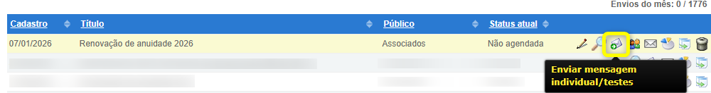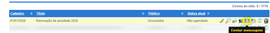1. De volta a tela de gerenciamento, clique no botão Enviar mensagem para realizar o envio da mensagem para o grupo selecionado inicialmente no cadastro da mensagem;