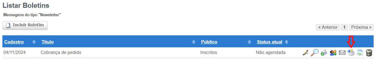 Opção de editar boletim: para alterar alguma informação da mensagem ou o título;