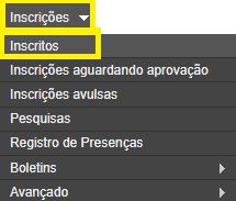 1. Acesse o menu Inscrições > Inscritos (no caso de associações os menus são Cadastros > Associados);